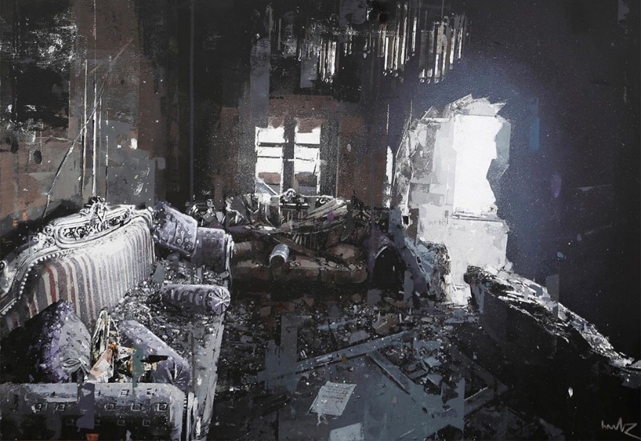 12、 在您看来,这两个看似不同的创作主题——一个指向激烈的外部冲突(叙利亚战争系列所展现的宏大战争叙事),一个指向静默的内部衰败(关于废弃建筑的微观静物描绘)他们之间是否存在内在的哲学或情感联系?或者说它们分别代表了您艺术生涯中不同阶段的思考?”