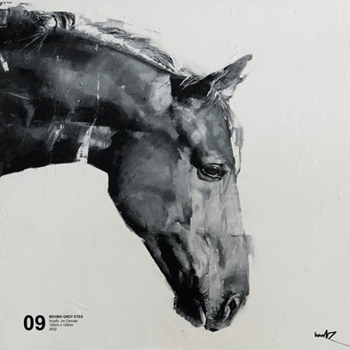答:我记得小时候必须背诵安东尼奥·马查多(Antonio Machado)的一首关于白马的诗,这激发了我去绘画……这便是我与马最初的联系。后来我遇到了我的伴侣,她彻底点燃了我对马的热情。她全力支持我绘制马的作品,甚至说马不仅美丽,它们的目光更是深深吸引了她。于是,这段创作旅程由此展开。