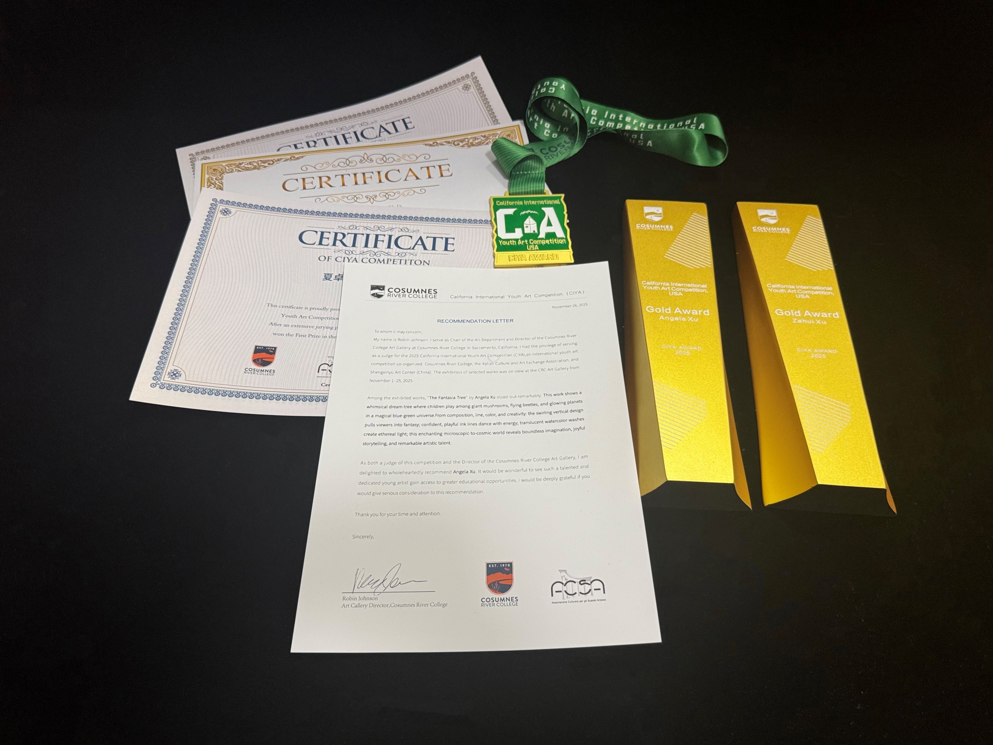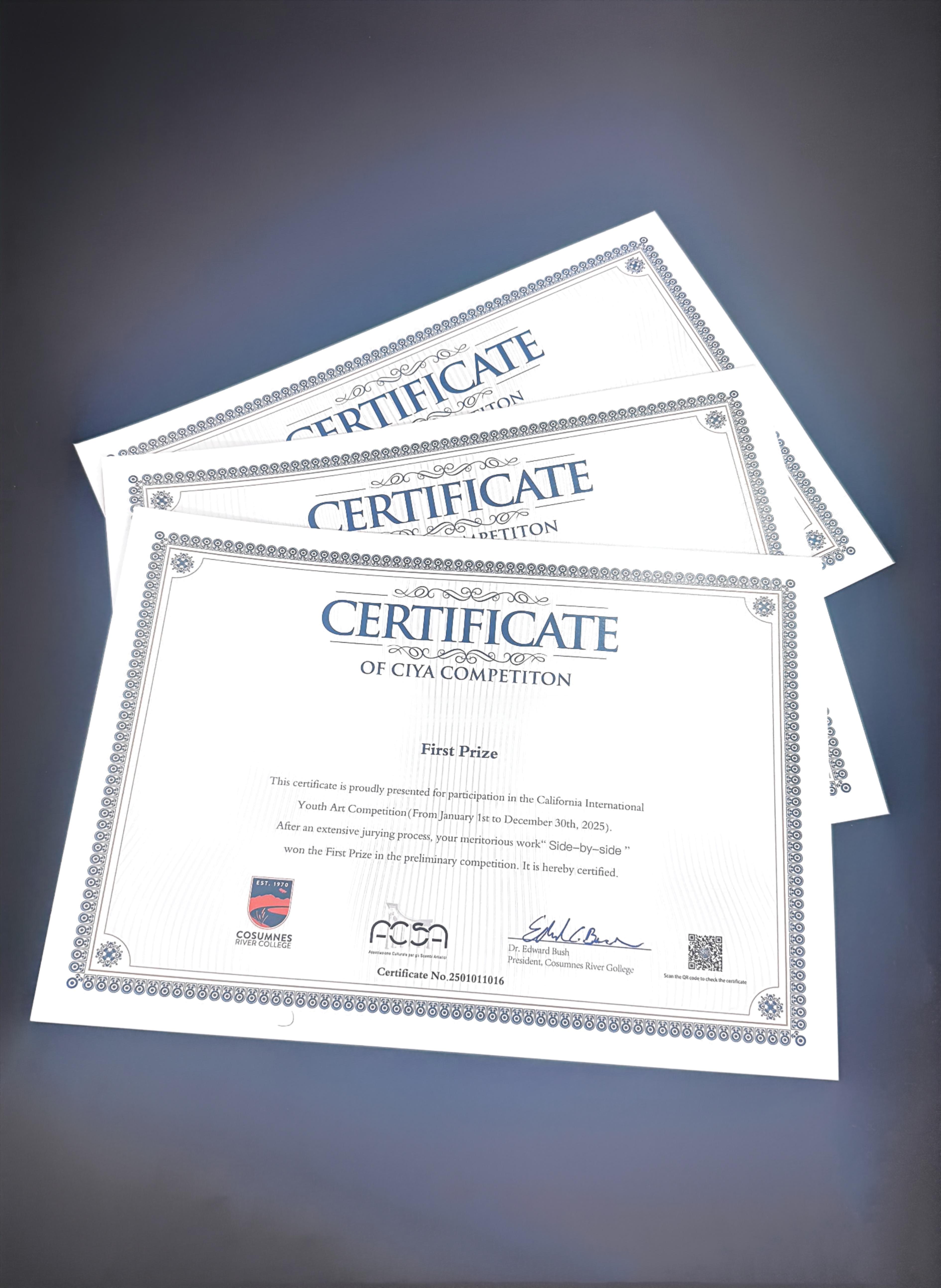 All certificates are jointly signed by the Chancellor of Los Rios Community College District and the Cosumnes River College Art Gallery, carrying international recognition and offering valuable opportunities for winners in art education and career development.