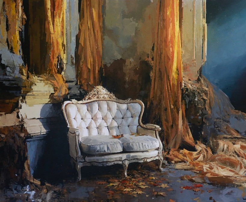 12、 在您看来,这两个看似不同的创作主题——一个指向激烈的外部冲突(叙利亚战争系列所展现的宏大战争叙事),一个指向静默的内部衰败(关于废弃建筑的微观静物描绘)他们之间是否存在内在的哲学或情感联系?或者说它们分别代表了您艺术生涯中不同阶段的思考?”