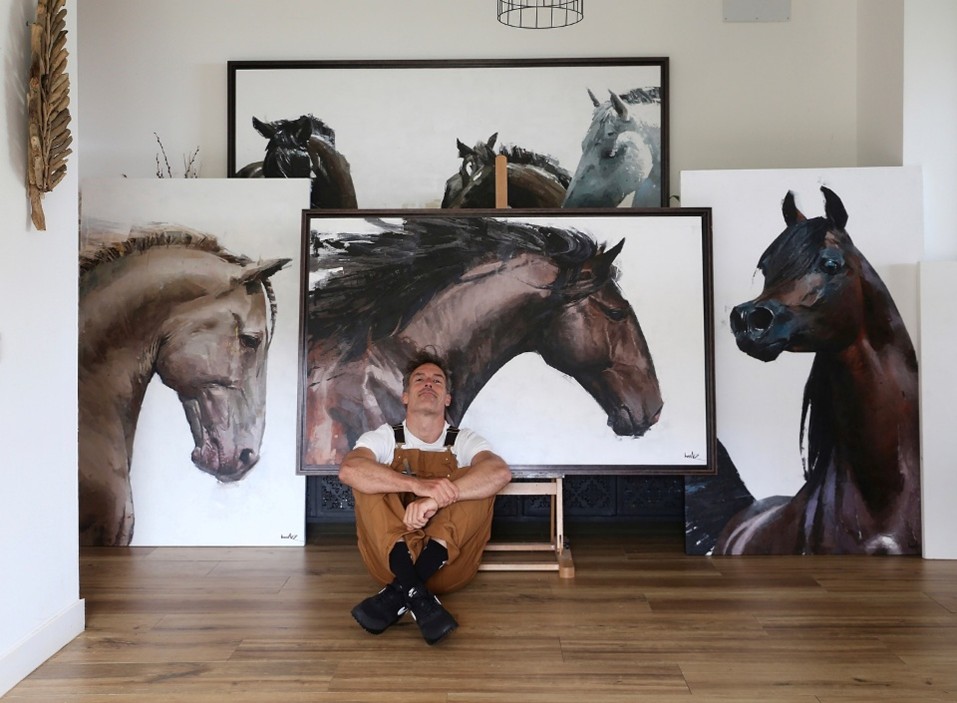 答:我记得小时候必须背诵安东尼奥·马查多(Antonio Machado)的一首关于白马的诗,这激发了我去绘画……这便是我与马最初的联系。后来我遇到了我的伴侣,她彻底点燃了我对马的热情。她全力支持我绘制马的作品,甚至说马不仅美丽,它们的目光更是深深吸引了她。于是,这段创作旅程由此展开。