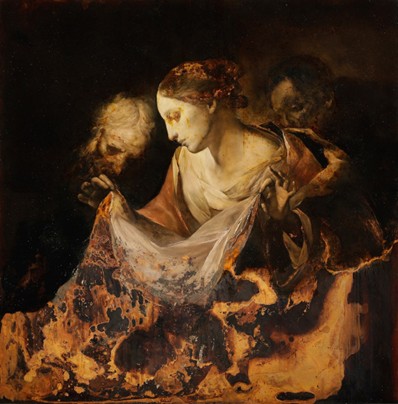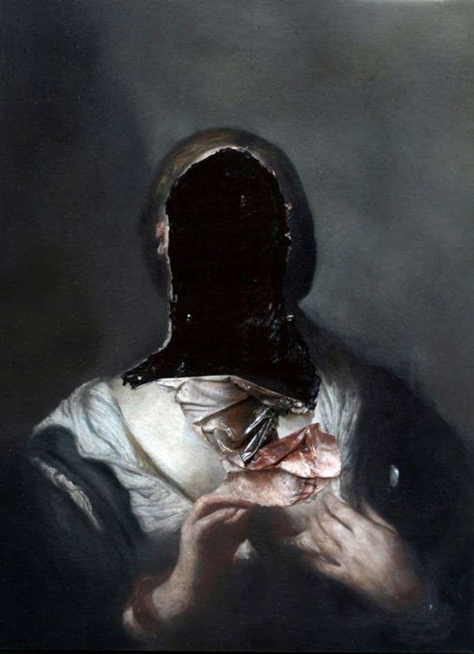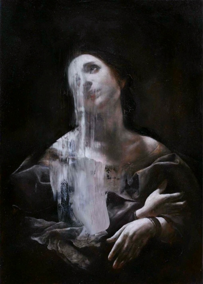 萨莫里的绘画常常从高度完成的古典图像出发。这些图像并非风格化的引用,而是建立在对文艺复兴与巴洛克绘画结构、光影逻辑与人体比例的深度理解之上。正因如此,他的破坏才具有真正的指向性。