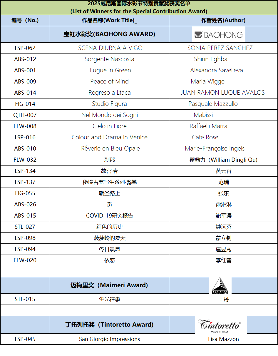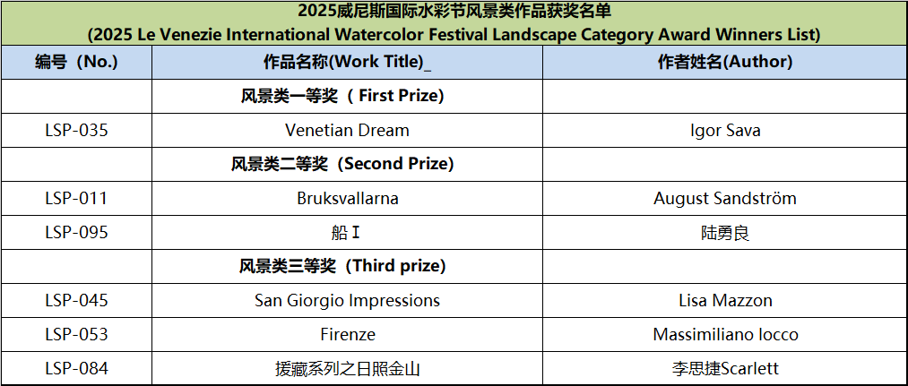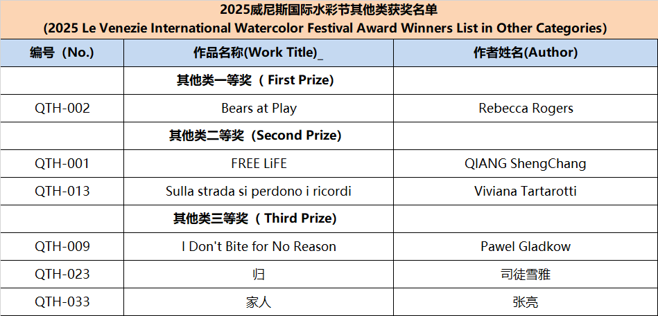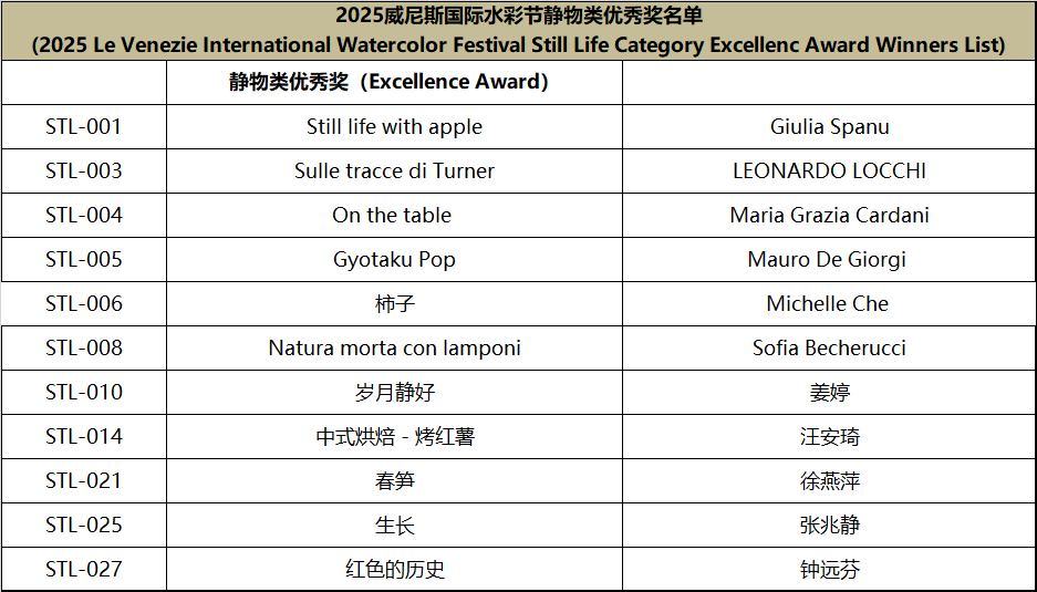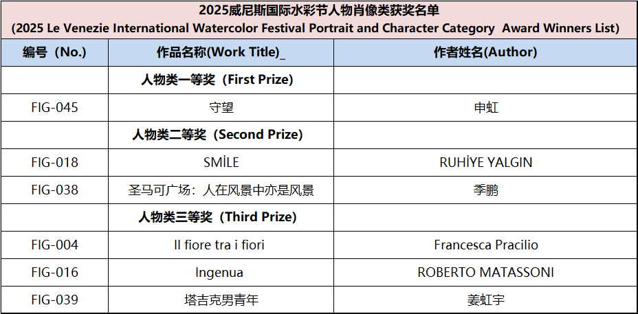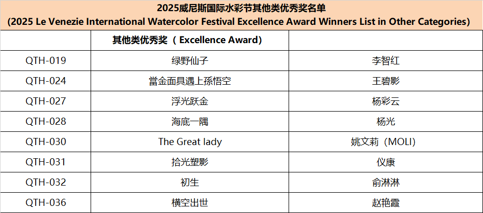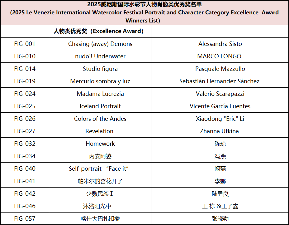 Since the announcement of the Watercolor Festival information, it has received active responses and widespread support from domestic and international artists, faculty and students from art academies, and watercolor enthusiasts. This edition of the festival received submissions from watercolor artists and art enthusiasts from nearly twenty countries, including Italy, Spain, France, Germany, Greece, Sweden, Poland, Algeria, Belgium, Switzerland, Australia, Turkey, Canada, Belarus, Azerbaijan, the United States, and Mexico. In accordance with the festival rules, after two rounds of rigorous review by more than ten international judges from Italy, Spain, Ireland, and China, the winning works for each award have been finalized, Special mention to other artists for their remarkable artworks (Excellence Award) . The review results are announced as follows: