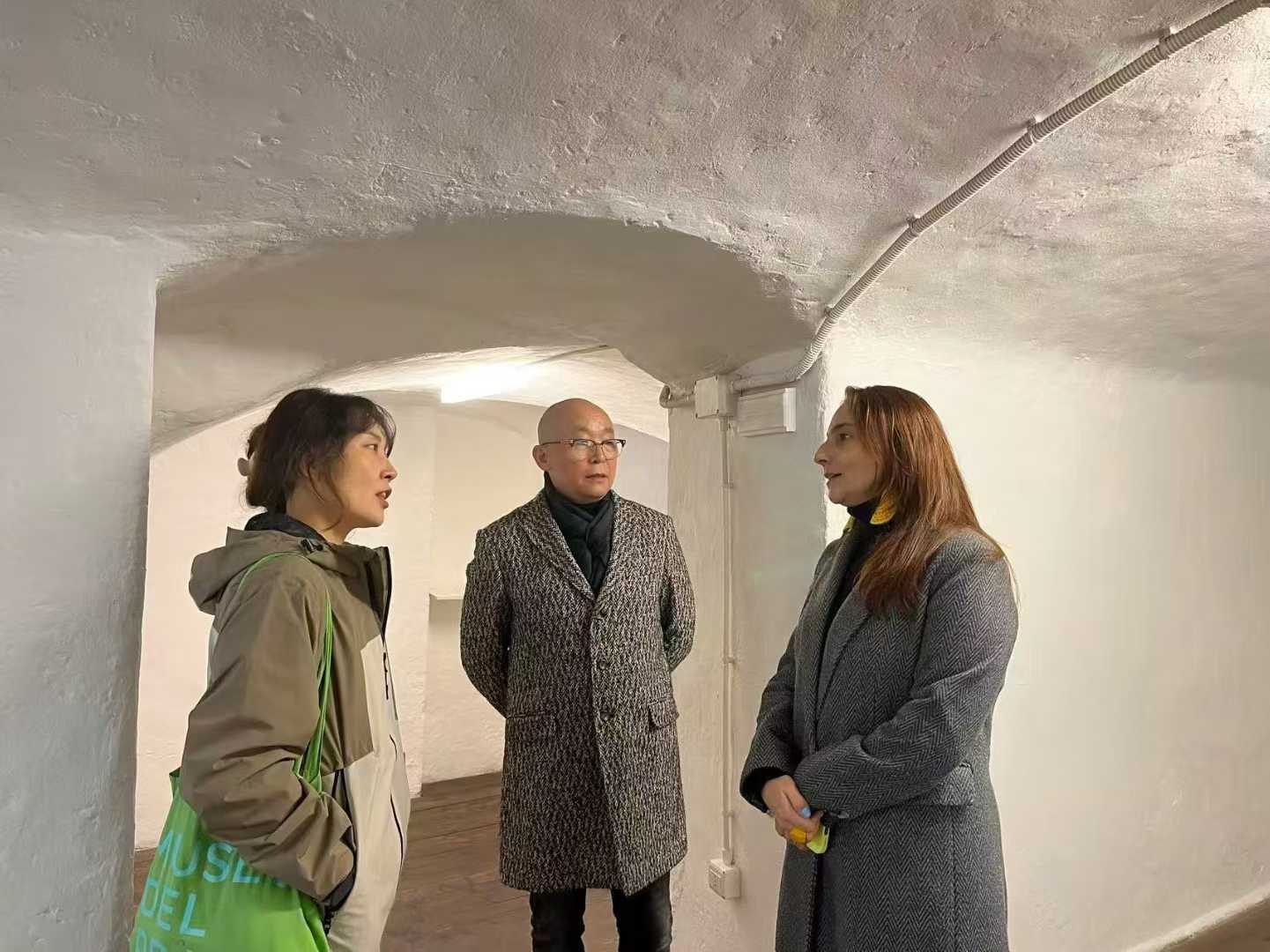 图3:盛鑫煜艺术创始人张鸿宾访问Chiasso Perduto画廊,并与桑德拉交谈